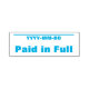 Este simples e simples design de carimbo apresenta as mensagens "Pago no Cheio" e uma linha onde uma data de pagamento pode ser escrita. Talvez possa ser utilizado para indicar que foi paga uma fatura ou uma fatura.