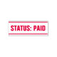 Este design de carimbo básico contém a mensagem "STATUS: PAID" (STATUS: PAGO) entre as linhas. Talvez possa ser usado para indicar que uma fatura ou fatura foi paga em cheio.