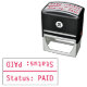 Este design de carimbo simples contém a mensagem "Status: PAID" (Status: PAGO). Talvez pudesse ser usado para indicar que uma fatura ou fatura foi totalmente paga.