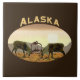 Dois touros de renas lutam durante a corrida de outono no extremo norte enquanto o sol se põe no fundo. A leitura de texto "Alaska" também é exibida.