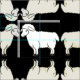 Carneiros brancos no tecido preto do fundo