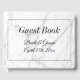 Caro livro de hóspedes de impressão de mármore branco. Design clássico para o casamento tradicional. Tipografia elegante com limite formal. Personalize com nome ou noiva e noiva mais data. Detalhes do luxo para o seu dia especial.