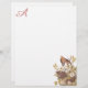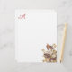 Mande desejos calorosos com esta família de aves que amamenta, amontoadas no fundo direito deste papel monograma. A família Carolina Pigeon ou Tartle Dove (Mourning Dove) de Audubon nidificando numa árvore com delicadas flores brancas. Reprodução artística de um original de John James Audubon. A cor do monograma é amostrada a partir do centro rosado das flores para se coordenar perfeitamente com o trabalho de arte.