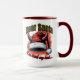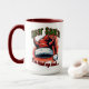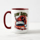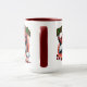 Uma caneca de Natal engraçada com chapéu de Papai noel e chifres do Diabo.