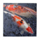 Duas carpas vermelhas e brancas koi (Cyprinus) à superfície da água
