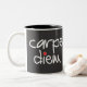Dois preto e branco uma caneca tonificada com a frase encorajadora de Carpe Diem - apreenda o dia para incentivar ao longo do dia o ou alguém especial a você