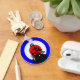 O estilo italiano encontra a cultura britânica para produzir um ícone. Presente ideal para qualquer patinete ou garota patinete. Design apresenta um retro mod rider em seu patinete delimitado pelo icônico vermelho branco e azul mod target
