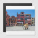 Pintura da praça de Veneza. Carrinho com caixas no meio da antiga praça italiana com edifícios coloridos em Veneza, Itália. Correio, serviço de entrega em Itália. Caixas deixadas sozinhas.