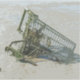 Fotografia digitalmente melhorada de um carrinho de comprar descartado na lama impressa em um adesivo.