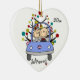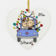 Um enfeite cerâmico bonito em forma de coração apresenta uma figura de palito marido e mulher no carro de casamento tendo seu primeiro Natal juntos como um casal casado! Mude facilmente a data para o ano atual neste casal bonitinho com o ornamento de design de árvore de Natal. Faz uma ideia de presente de excelente!