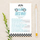 Este é um carro de corrida azul adivinha quem! Jogo do chá de fraldas. Adivinha Quem? - Há 15 perguntas. Os convidados selecionarão se a pergunta se aplicar à Mãe ou ao Pai. Quem acertar as respostas, ganha!
