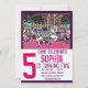 Aqui está um convite de aniversário bonito e fofo de uma menina com um design de carrossel rosa e roxo. Esses modelos de convite de festas de aniversário de criança são fáceis de personalizar e personalizar com os detalhes de seu próprio partido. A parte de trás do convite é roxo sólido.