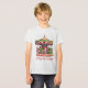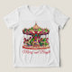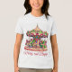 Crianças T-Shirt em um carrossel de Natal temido em listras de menta rosa e branca, acentuadas com verde, e a legenda "Feliz e Brilho"