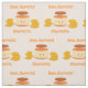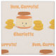 Tecido com um frasco sorridente de comida de bebê de cenoura. Esta ilustração cartoon inclui pilhas de cenouras fatiadas. O design inclui um nome personalizável e as palavras "Yum, Carrots!"