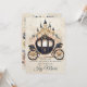 Este design elegante apresenta uma carruagem de conto de fadas feminina em azul marinho com um castelo de princesa atrás adornado com flores rosa bege.
