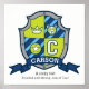Estilo de cavaleiro escudo com letra de crista C com nome de arte monograma, poster perfeito para um quarto de meninos ou sala de jogos em tons de verde, azul, branco e cinza. Personalize com o próprio nome e nome do seu filho, significando um toque personalizado no quarto ou quarto de quarto do seu filho, este exemplo é para o nome Carson A rocky fort. Confiante e forte, filho do Carr. Poster impressão ideal para um presente para um novo bebê, aniversário de meninos, para um batizado, nomeação de bebês ou presente de chá de fraldas. Possui rosto, coroa, estrela e letra C. Arte gráfica e design de desenho único por Sarah Trett. www.sarahtrett.com para www.mylittleeden.com