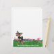 O Animal Parade Chihuahua Dog Coordenando Papelaria Personalizada e Acessórios apresenta nossa arte original de um bonito cão preto e bronzeado Chihuahua parado em um jardim com um céu azul e roxo texturizado com uma bela borda roxa e ondulada. Esta divertida arte de estimação, pintada pelo nosso talentoso ilustrador infantil, Traci Van Wagoner, é perfeita amantes de Chihuahua, amantes de cachorros, e amantes humorísticos de arte animal de todas as idades. Em muitos dos nossos caipiras de papelaria brancos, você encontrará esse cachorro bonitinho vindo e indo com sua cabeça de um lado e essa cauda do outro. Junte-se à Parada Animal e traga um sorriso à cara de alguém que você ama com um presente de nossos bonitos conjuntos de presentes de papelaria Chihuahua personalizados. Puta!