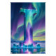 Adicione um toque de magia tranquila do norte ao seu espaço com este pôster da letra I Aurora. Uma letra I brilhante emerge de uma floresta coberta de neve, iluminada por cortinas fluídas de Luzes do Norte em tons luminosos de turquesa, esmeralda e violeta. O céu noturno brilha com cores suaves e dançantes, lançando um brilho suave sobre a neve e destacando uma cena pacífica de inverno com blocos de gelo para o I na base do monograma.