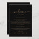 Esta carta de boas-vindas ao casamento clássico de ouro negro é perfeita para um casamento moderno. O design simples e elegante apresenta a tipografia clássica e de rico em ouro. Personalize a frente com uma mensagem de boas-vindas para seus convidados e seus nomes. Personalize as costas com a programação de eventos e outras informações úteis.