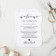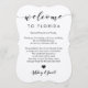 Este cartão moderno e elegante é o símbolo perfeito para as suas bolsas de boas-vindas do hotel. Digite os eventos principais e uma nota personalizada para ajudar seus convidados a navegar no fim de semana.