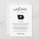 Compartilhe uma mensagem de boas-vindas para seus convidados do casamento de Iowa, bem como um itinerário ou agenda dos eventos do fim de semana. Front mostra sua mensagem de boas-vindas com um mapa da silhueta do estado de Iowa com um dentro do coração. Personalize o reverso com o dia do casamento ou o itinerário do fim de semana do casamento. Perfeito por incluir nas bolsas de boas-vindas do hotel ou entregar aos quartos dos seus convidados.