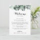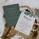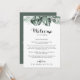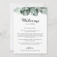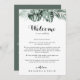 Esta carta de boas-vindas a um casamento branco e verde tropical é perfeita para um casamento rústico. A design apresenta palmeiras verdes folhas buquês com flores brancas adoráveis. Personalize a frente com uma mensagem de boas-vindas para seus convidados e seus nomes. Personalize as costas com a programação de eventos e outras informações úteis.