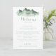 Esta carta de boas-vindas do país da montanha verde é perfeita para um casamento rústico. A design apresenta uma montanha verde pintada à mão de uma aquarela, inspirando um tema do campo. Personalize a frente com uma mensagem de boas-vindas para seus convidados e seus nomes. Personalize as costas com a programação de eventos e outras informações úteis.