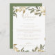 Esta carta de boas-vindas de casamento outono verde-ouro é perfeita para um casamento moderno. A design apresenta uma fascinante folhagem artística verde e dourada. Personalize a frente com uma mensagem de boas-vindas para seus convidados e seus nomes. Personalize as costas com a programação de eventos e outras informações úteis.
