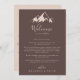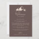 Esta carta de boas-vindas do país da montanha é perfeita para um casamento rústico. O design apresenta uma coloração aquática idílica, montanha bege. Personalize a frente com uma mensagem de boas-vindas para seus convidados e seus nomes. Personalize as costas com a programação de eventos e outras informações úteis.
