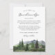 Faça seus convidados se sentirem bem em casa com esta carta de boas-vindas e um cartão itinerário da coleção Timberline de Redwood & Vine Design Co., desenhada com uma ilustração feita manualmente de floresta e montanha em tons verdes calmantes, este cartão apresenta uma nota calorosa de boas-vindas na frente e um itinerário de evento claramente organizado no final de semana. Um complemento perfeito para bolsas de boas-vindas, check-ins de hotel ou largadas de portas de cabine, este design combina encanto rústico com elegância minimalista — ideal para casamentos florestais, locais de montanha ou comemorações de inverno. Personalize com sua própria mensagem e programação.