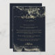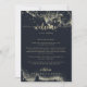 Esta carta de boas-vindas do casamento com ouro de aquarela é perfeita para um casamento rústico. O design apresenta uma abertura dourada pintada manualmente em um fundo azul escuro. Personalize a frente com uma mensagem de boas-vindas para seus convidados e seus nomes. Personalize as costas com a programação de eventos e outras informações úteis.