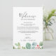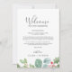 Estas cartas de boas vindas e cartões itinerários são perfeitos para um casamento de dezembro. O design de inverno apresenta cor verde-d'água macia eucalipto e botânicos modernos, com borras de groselhas vermelhas clássicas. A frente da carta apresenta uma carta de boas-vindas e a parte de trás da carta apresenta o itinerário do casamento. Estas notas são perfeitas para casamentos de destino e bolsas de boas-vindas de hóspedes.