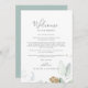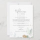 Estas cartas de boas vindas e cartas itinerárias são perfeitas para um casamento moderno. O elegante design botânico apresenta uma aquarela clara e arejada, eucalipto, acentuado com folhas de brilho de ouro branco. A frente da carta apresenta uma carta de boas-vindas e a parte de trás da carta apresenta o itinerário do casamento. Estas notas são perfeitas para casamentos de destino e bolsas de boas-vindas de hóspedes.