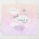 Um rótulo de vinho espumante personalizado "A noiva está na Nuvem 9", divertido e divertido, com um grupo de nuvens rosadas fofinhas, uma das quais tem o rótulo "Nuvem 9". O tema deste chá de panela humorístico é uma carta, que você pode fazer o tema de todo o seu chá, usando fontes de máquina de escrever e jogos de noiva relacionados ao envio e recebimento de mensagens.