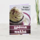 O cartão diz "χ ª multa cala doce para o desejo de um feliz aniversário".