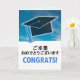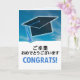 Um cartão de graduação de parabéns em japonês. A placa diz "ご 卒 お め で と う ご ざ い 業 ま す 。, o que significa "Parabéns na sua graduação".