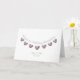 Cartão de felicitações de 1º aniversário de casamento moderno branco com corações de pérola roxa em bandeirolas.
