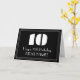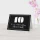 Este design clássico de cartão de aniversário inspirado na aparência dos anos 1920/1930 apresenta um grande número "10" com visual inspirado no art déco, a mensagem "Feliz aniversário de 10 anos", um nome personalizável e um padrão de borda composto por linhas finas na frente. O fundo da frente é colorido de preto. O interior tem uma mensagem de aniversário personalizável ou pode ser deixado em branco se uma mensagem for escrita à mão. Um cartão de aniversário personalizado como este pode ser enviado para celebrar o décimo aniversário de alguém.