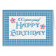 Cartão 100º aniversário, Blue Check Gingham Pattern
