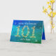 Cartão de Aniversário de 101rua - Design Verde Azul com Número 101 feito de Estrelas Douradas, Brancas e Vermelhas. Você pode editar ou excluir o texto conforme desejar, clicando em "Personalizar este modelo". 101 em Estrelas - Número de Idade - Cem e Primeiro Cartão de Aniversário - Fundo Azul/Verde - Texto personalizável. Design de cartão de gradiente texturizado azul/verde com estrelas número design - o número "101" criado com estrelas amarelas, vermelhas e brancas. Texto personalizável: na frente do cartão: Parabéns e Adicionar um Nome. Texto personalizável: dentro card: "Wishing You a Muito Happy 101rua Birthday" e uma área de mensagem personalizada. Mais cores e outras idades estão disponíveis. Se você tem um requisito específico, por favor, entre em contato comigo.