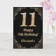 Cartão 11 Birthday Black and Dourado Glitter Frame