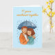 A sweet illustration celebrating the idea of weathering life together—still smiling after 11 years. The steel-grey umbrella gives a subtle steel anniversary nod while keeping the mood warm and romantic.