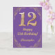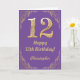 Cartão 12 Aniversário Roxo e Dourado Quadro Glitter