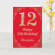 Cartão 12 Birthday Red and Dourado Glitter Frame