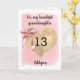 Um arco de coquete rosa personalizado e um cartão de 13 de coração dourado para neta, filha, afilhada, etc. Você pode personalizar facilmente a frente deste cartão de aniversário de 13 cor-de-rosa bonito com o destinatário e seu nome. A mensagem da placa de dentro também pode ser editada, se desejado. Isso faria um doce cartão de décimo terceiro aniversário para ela.