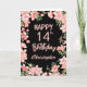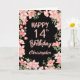 Cartão 14 Aniversário Pink Peach Aquarela Floral Preto