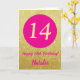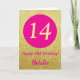 14 Feliz Aniversário Rosa Quente e Cartão Brilhante Dourado com nome personalizado. Para mais personalização, clique no botão "Personalizar" e use nossa ferramenta de design para modificar este modelo.