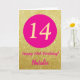 Cartão 14 Feliz Aniversário Rosa Quente e Dourado Brilho