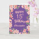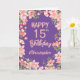 Cartão de Aniversário Floral de Pessegueiro Pêssego Roxo de Aniversário 15. Para mais personalização, clique no botão "Personalizar" e use nossa ferramenta de design para modificar este modelo.