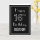 A frente deste elegante deco de arte dos anos 30 inspirou design de cartão de saudação temático de aniversário a mensagem "Feliz 16º Aniversário," junto com um nome de destinatário personalizável. O número "16" na frente tem uma aparência com rico, e há também uma borda com várias linhas. O dentro tem uma mensagem de saudação de aniversário personalizada, ou talvez possa ser apagado e deixado vazio se uma mensagem for escrita manualmente. Um cartão de cumprimentos de aniversário luxuoso e personalizado como este pode ser usado para celebrar o décimo sexto aniversário de alguém. [~Z0000640]